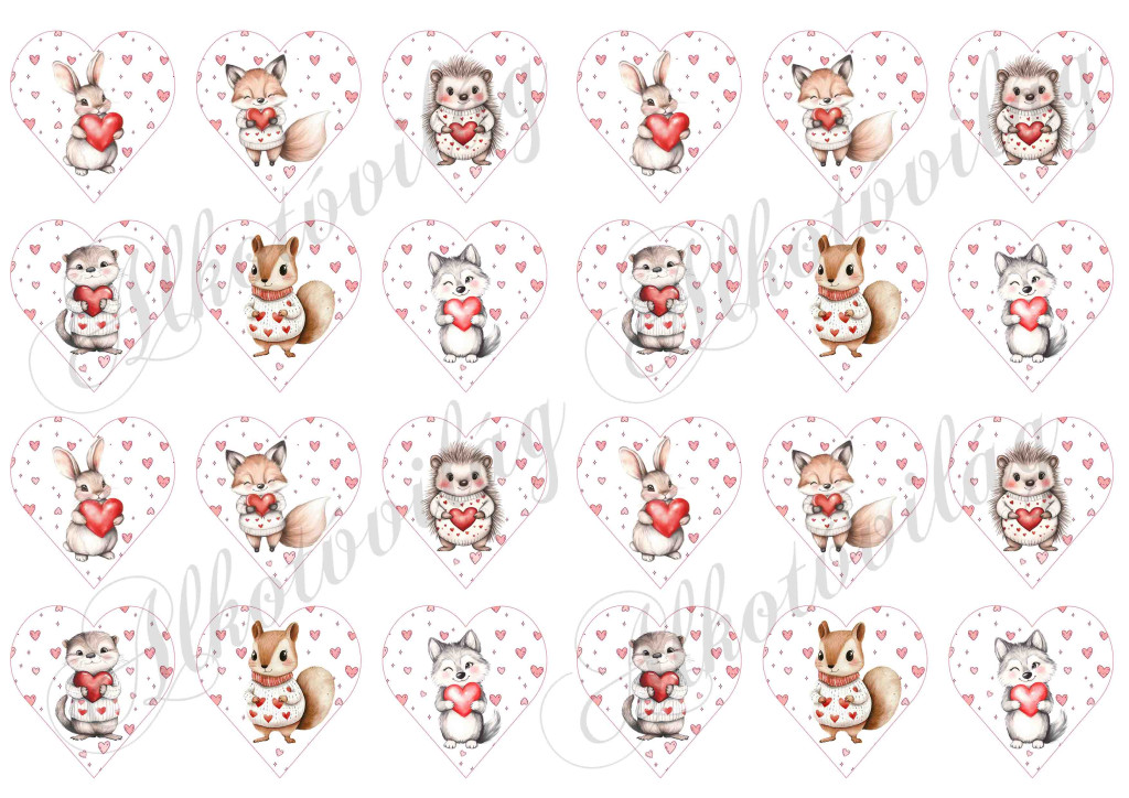 4,5 cm magas szívek apró szívecskékkel és Valentin napi - Anyák napi szívet tartó állatkákkal