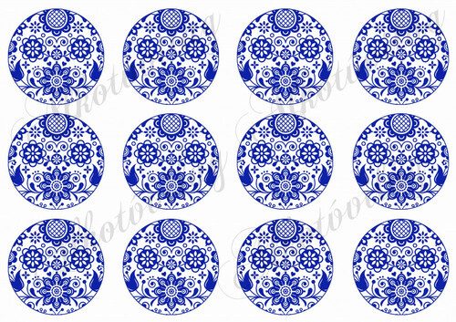6 cm átmérőjű körök KÉK folk mintával - Több mint 20 alapanyagon elérhető.