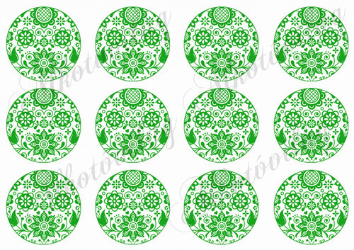 6 cm átmérőjű körök ZÖLD folk mintával - Több mint 20 alapanyagon elérhető.