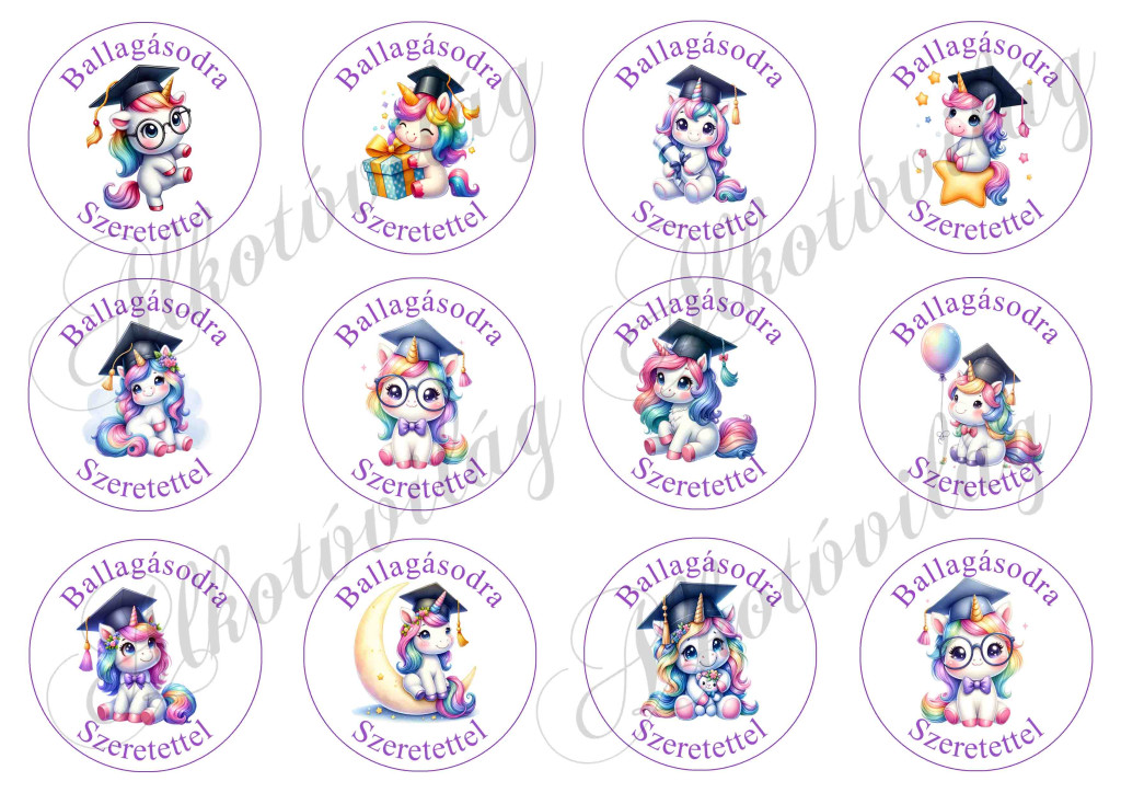 6 cm-es körök cuki unikornisokkal - BALLAGÁSODRA SZERETETTEL felirattal