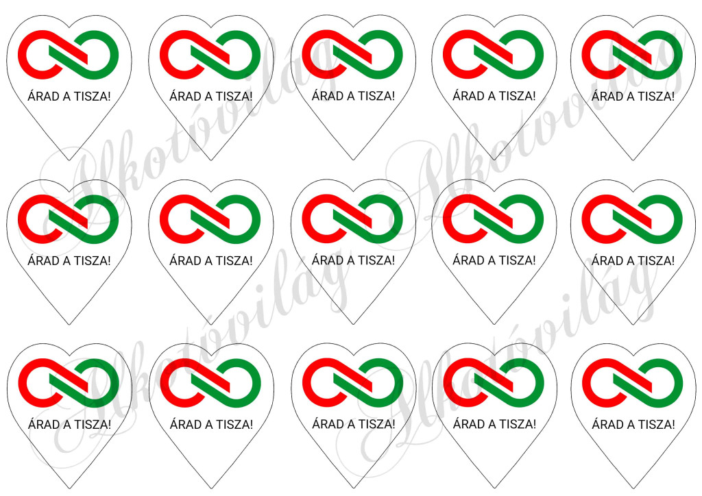 6 cm magas szívek logóval és ÁRAD A TISZA felirattal