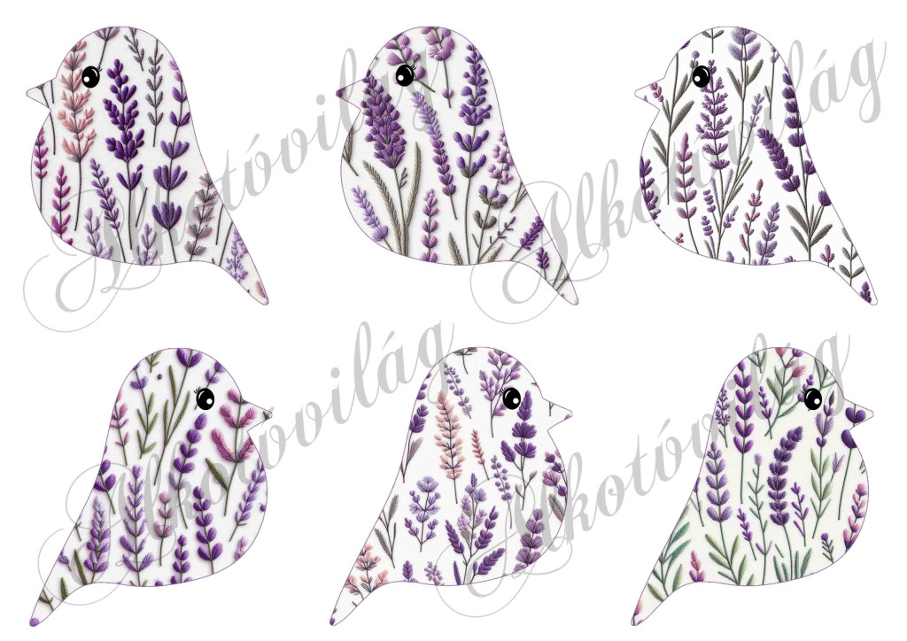 9 cm magas madárkák hímzett textúrájú levendula mintákkal