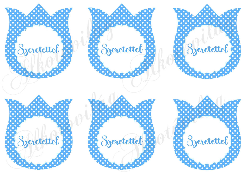 9 cm magas pöttyös tulipánok - KÉK - SZERETETTEL felirattal
