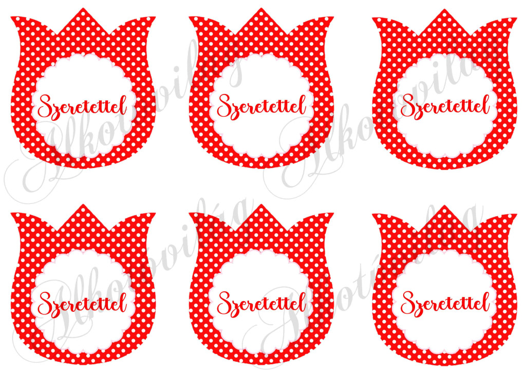 9 cm magas pöttyös tulipánok -PIROS - SZERETETTEL felirattal