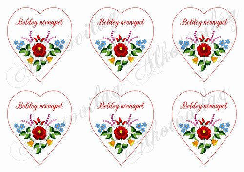 9 cm magas szívek kalocsai mintával -BOLDOG NÉVNAPOT felirattal - Több mint 20 alapanyagon elérhető.