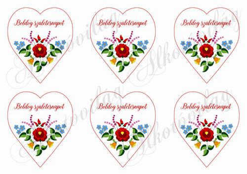 9 cm magas szívek kalocsai mintával -BOLDOG SZÜLETÉSNAPOT felirattal - Több mint 20 alapanyagon elérhető.