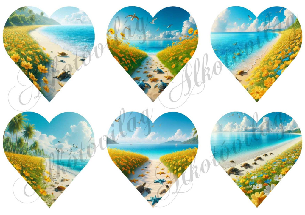 9 cm magas szívek tengerparttal, teknősökkel