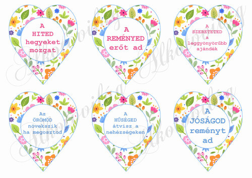 9 cm magas szívek vidám, színes apró virágokkal - FELIRATOKKAL - Több mint 20 alapanyagon elérhető.