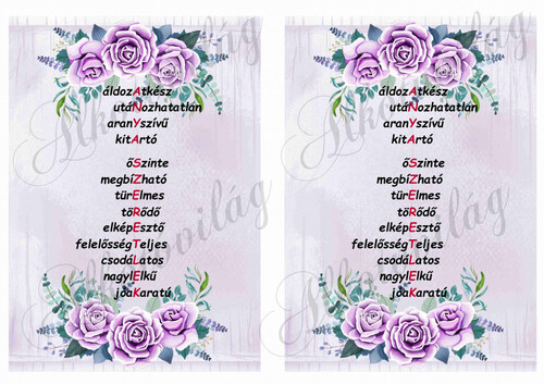 ANYA SZERETLEK felirat lila rózsákkal 2db - Több mint 20 alapanyagon elérhető.
