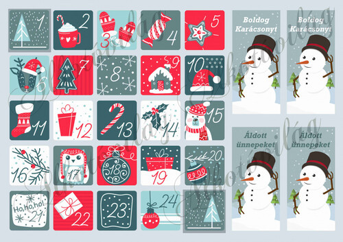 Adventi naptár szürke-piros-zöld - Több mint 20 alapanyagon elérhető.
