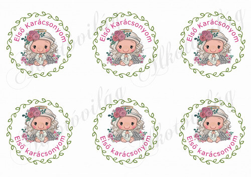 Angyalkák rózsákkal, első karácsonyom felirattal - Több mint 20 alapanyagon elérhető.