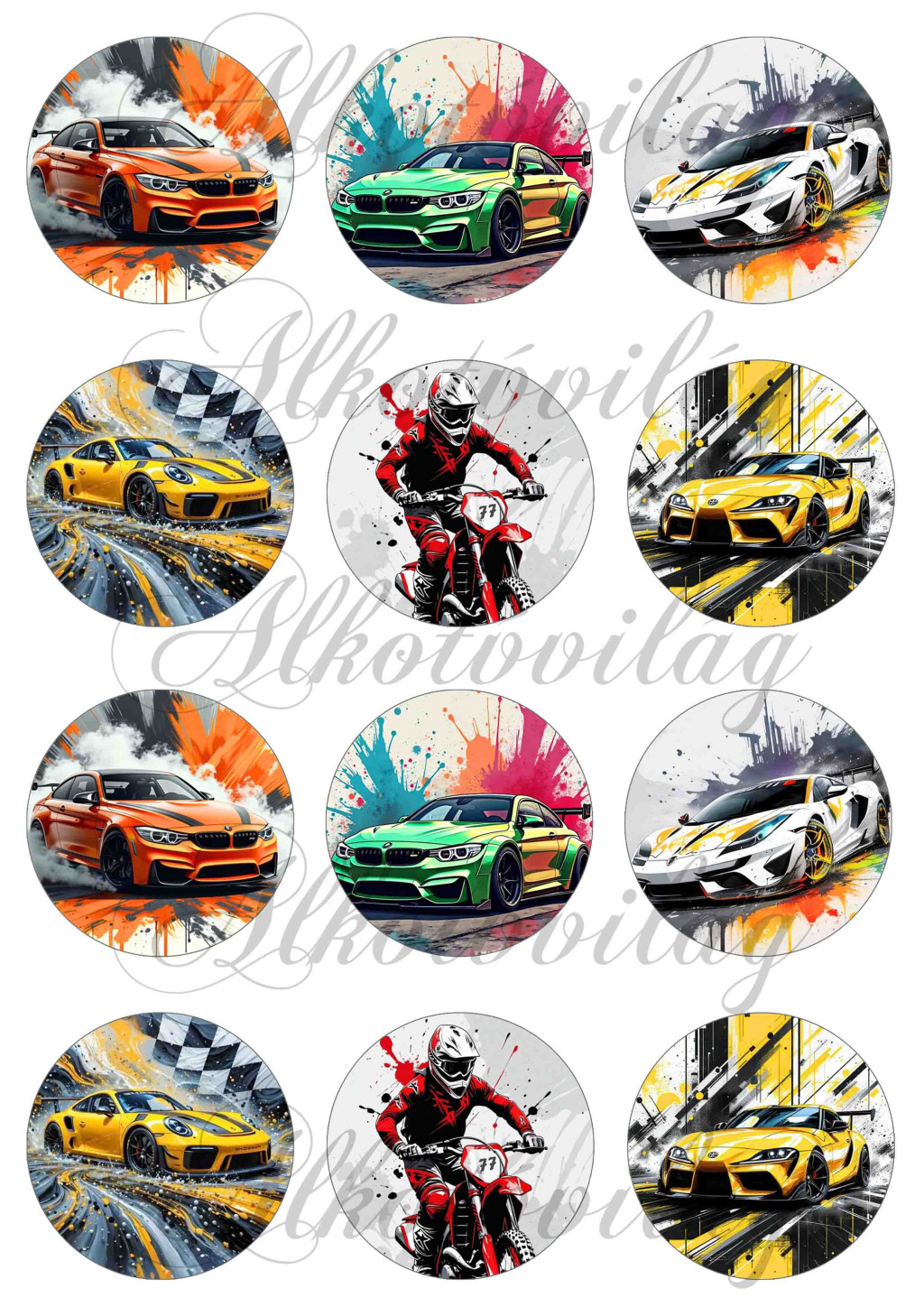 Autók és motor 6 cm átmérővel - HŰTŐMÁGNES, AJÁNDÉKKÍSÉGŐ, KULCSTARTÓ stb. készítéshez