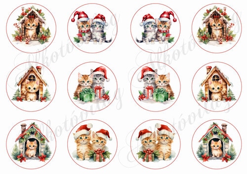 Bájos kisicák házikókkal és testvérpárok - 6 cm - Több mint 20 alapanyagon elérhető.