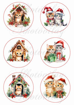 Bájos kisicák házikókkal és testvérpárok - 8,5 cm - Több mint 20 alapanyagon elérhető.