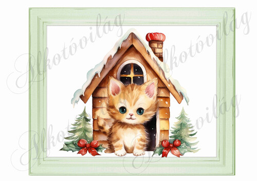Bájos vörös kisica házikóval 24 x 19,5 cm - Több mint 20 alapanyagon elérhető.