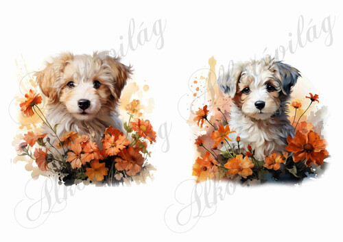 Bolognese, hawanese kutyusok virágokkal 3 - kb. 15 x 14,5 cm - Több mint 20 alapanyagon elérhető.
