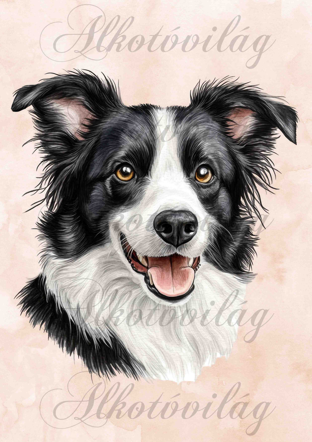 Border collie kutyus portré - PÁRNABLOKK, VÁSZONTÁSKA BLOKK, PATCHWORK BLOKK, UZSONNÁSTASAK BLOKK