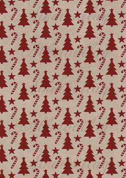 Bordó fenyőfák, cukorkabotok és csillagok kraft alapon - Több mint 20 alapanyagon elérhető.