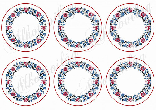 Bordó-kék népi motívumos körök poháralátéthez stb - 9 cm - Több mint 20 alapanyagon elérhető.