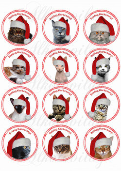 Cicák karikákban karácsonyi sapikban - Több mint 20 alapanyagon elérhető.