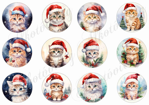 Cicák mikulássapkában - 6 cm - Több mint 20 alapanyagon elérhető.