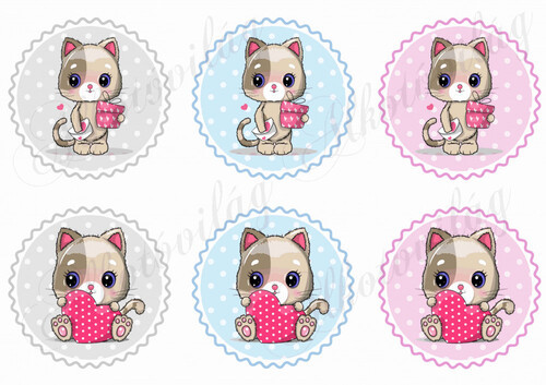 Cicák szívekkel pöttyös körökben