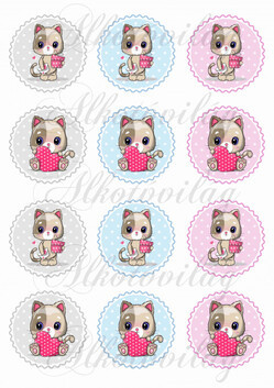 Cicák szívekkel pöttyös körökben KICSIBEN - Több mint 20 alapanyagon elérhető.