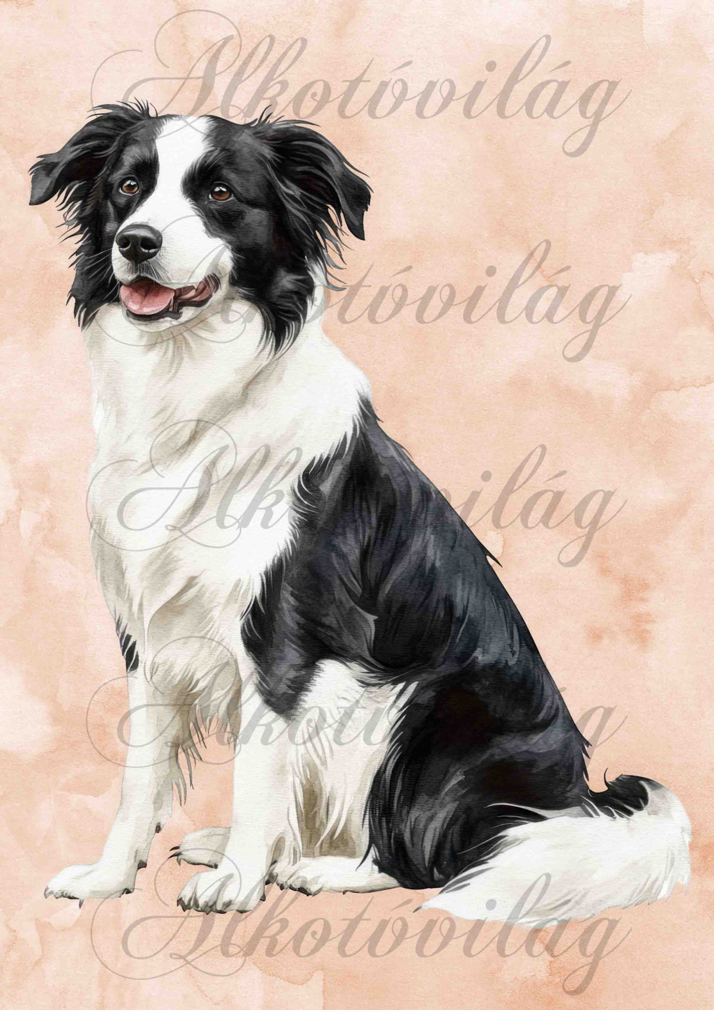 Collie ülő kutyus - PÁRNABLOKK, VÁSZONTÁSKA BLOKK, PATCHWORK BLOKK, UZSONNÁSTASAK BLOKK