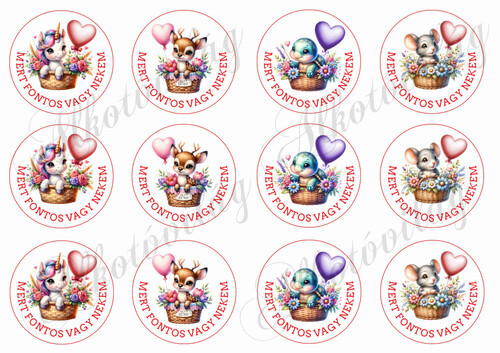 Cuki állatkák lufikkal 2 - MERT FONTOS VAGY NEKEM elirattal 6 cm-es körökben