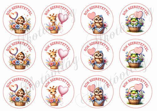 Cuki állatkák lufikkal 3 - SOK SZERETETTEL felirattal 6 cm-es körökben - Több mint 20 alapanyagon elérhető.