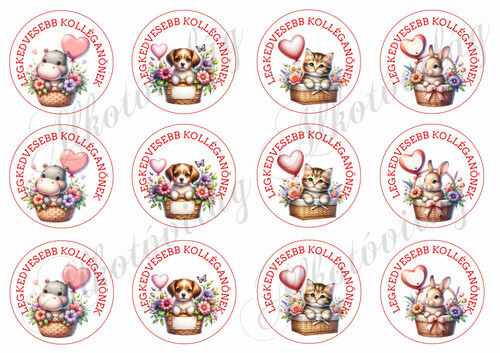 Cuki állatkák lufikkal - LEGKEDVESEBB KOLLÉGANŐNEKK felirattal 6 cm-es körökben - Több mint 20 alapanyagon elérhető.