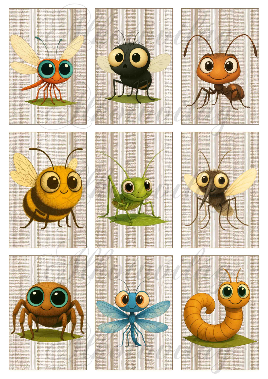 Cuki bogarak barnás csíkos alapon - 9 x 6 cm - HŰTŐMÁGNES, AJÁNDÉKKÍSÉGŐ készítéshez