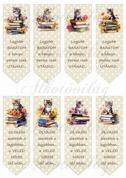 Cuki cicás könyvjelzők pöttyös - BÉZS alapon - Több mint 20 alapanyagon elérhető.