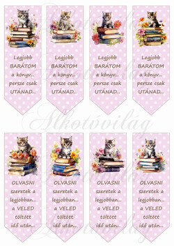 Cuki cicás könyvjelzők pöttyös - RÓZSASZÍN alapon - Több mint 20 alapanyagon elérhető.