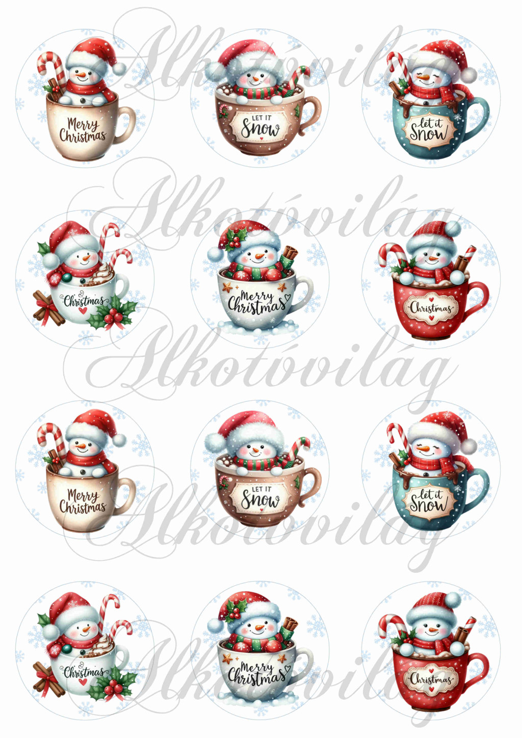 Cuki hóemberkék hópehely mintás körökön - 5,5 cm - Több mint 20 alapanyagon elérhető.