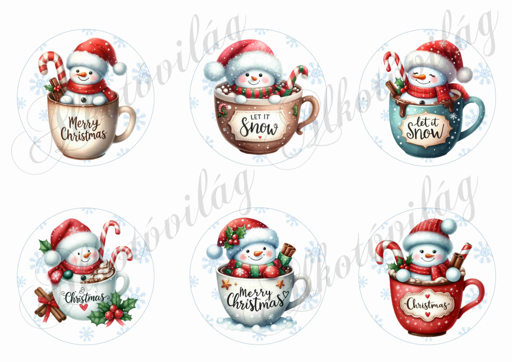 Cuki hóemberkék hópehely mintás körökön - 8 cm - Több mint 20 alapanyagon elérhető.