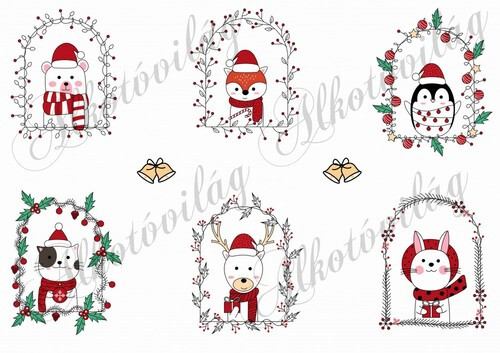 Cuki karácsonyi állatkák füzérekkel- nyitott szemmel - Több mint 20 alapanyagon elérhető.