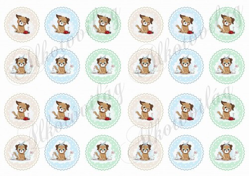 Cuki kutyusok virággal és katicával miniben - 4 cm - Több mint 20 alapanyagon elérhető.