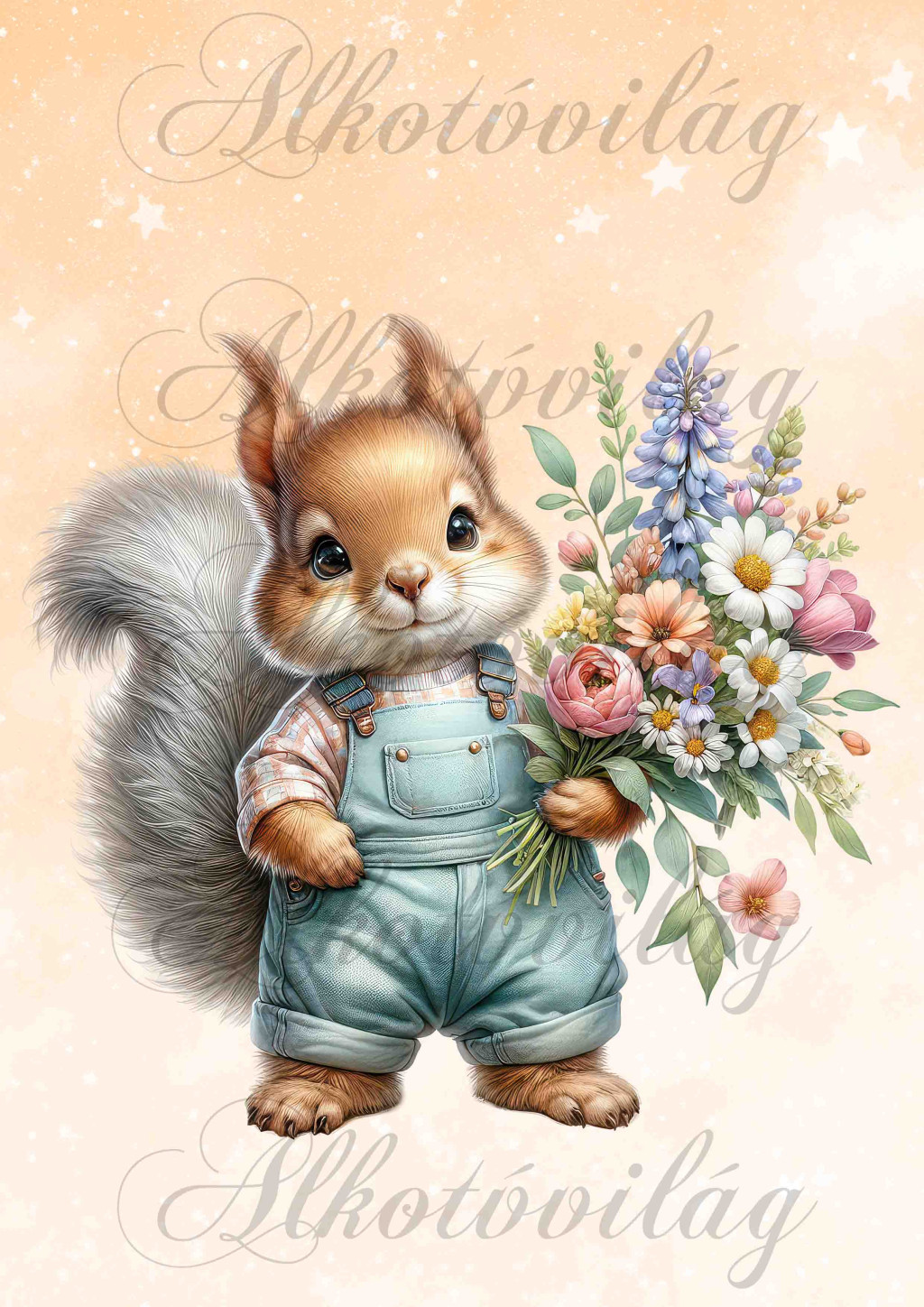 Cuki mókus fiú virágcsokorral - PÁRNABLOKK, VÁSZONTÁSKA BLOKK, PATCHWORK BLOKK, UZSONNÁSTASAK BLOKK
