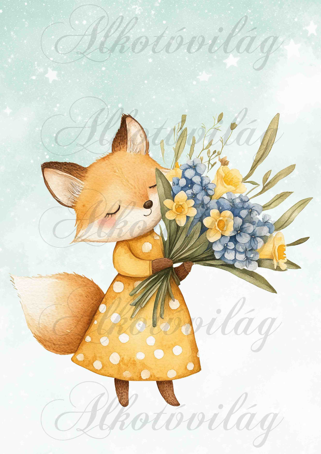 Cuki róka virágcsokorral - PÁRNABLOKK, VÁSZONTÁSKA BLOKK, PATCHWORK BLOKK, UZSONNÁSTASAK BLOKK