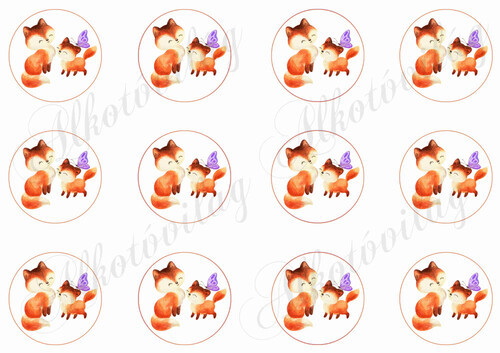 Cuki rókák pillangóval anyák napjára 5,5 cm-es körökben - Több mint 20 alapanyagon elérhető.