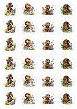 Cuki tacskó kutyusok körökben tavaszi virágokkal - MINIBEN - Több mint 20 alapanyagon elérhető.