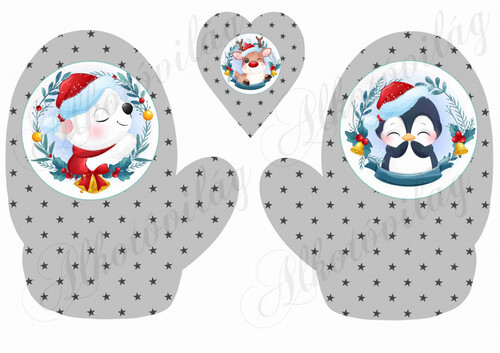 Cuki téli figurák csillagos kesztyűn - Több mint 20 alapanyagon elérhető.