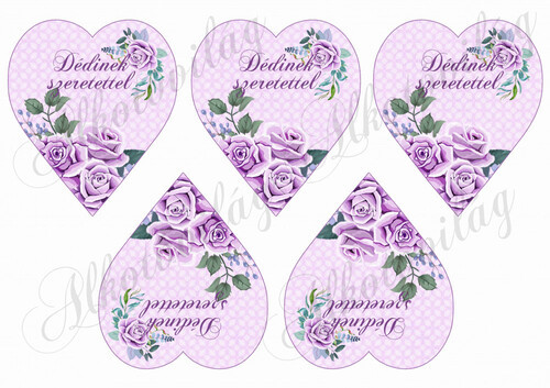 DÉDINEK SZERETETTEL feliratú lila rózsás szívek - Több mint 20 alapanyagon elérhető.