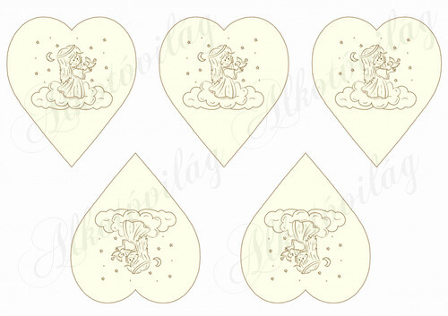 Drapp szívek madárkás angyalkával - Több mint 20 alapanyagon elérhető.