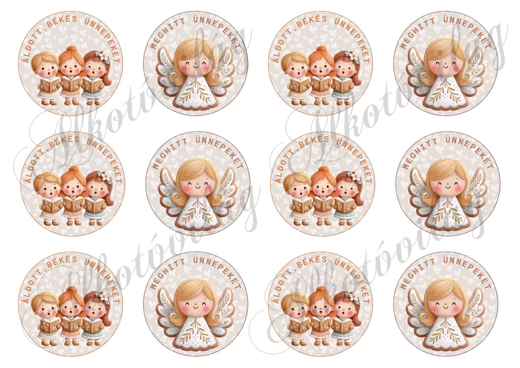 Éneklő gyerekek és angyalka 6 cm-es körökben