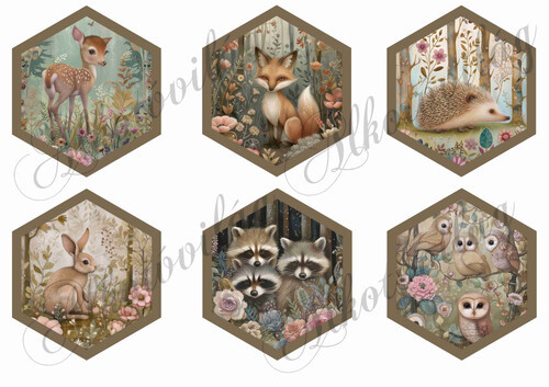 Erdei állatkák hexagonokban 9,5 x 8 cm - Több mint 20 alapanyagon elérhető.