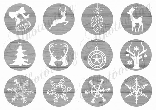 Fehér karácsonyi sziluettek fa kör alapokon - Több mint 20 alapanyagon elérhető.