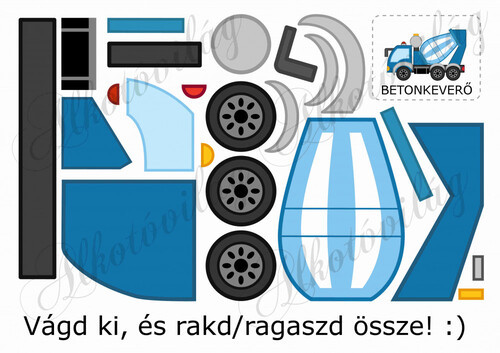 Feladatlap gyerekeknek - BETONKEVERŐ összerakása - Több mint 20 alapanyagon elérhető.
