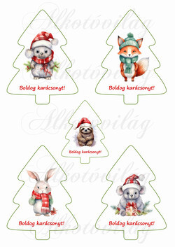 Fenyőfák cuki téli állatkákkal 2. változat - 11 cm magas - Több mint 20 alapanyagon elérhető.
